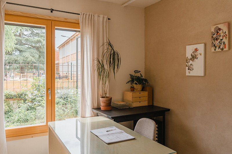 Els altres materials com la fusta natural tractada amb cera d’avella, la pintura ecològica o materials ceràmics, garanteixen un espai interior saludable i lliure de tòxics.